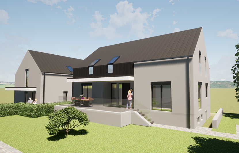 A telek tulajdonosa azzal keresett meg engem, mint építész tervezőt, hogy a telken található meglévő lakóépületet a mai igényeket kielégítő módon, de a gazdaságosságra törekedve fel szeretné újítani, illetve egy további projekt keretében a telek közel maximális beépíthetőségét kihasználva, a telekre új lakóépületet szeretne építeni. A felújítandó épület teljes egészére elmondható, hogy a nyílászárók méretét megnöveljük, helyenként új nyílászárót építünk be. A nyílászárók tervezésénél különös figyelmet fordítunk arra, hogy a telken újonnan létesítendő épületbe ne lehessen átlátni.